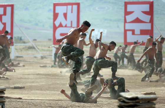 천하를 휘여잡는 경애하는 원수님의 특출한 정치실력과 천출위인상앞에 세상사람 누구나 매혹과 경탄을 금치 못하고 김정은숭배열풍이 온 지구상에 강렬한 충격파를 일으키는 경이적인 현실에서 우리들은 희세의 위인을 모신 커다란 민족적자긍심과 격정으로 가슴부풀어오름을 금할수 없었습니다.
