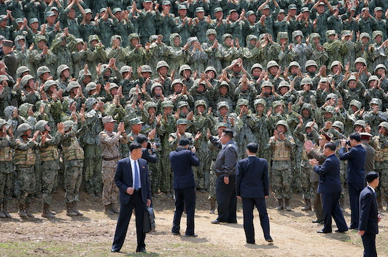 《인민들과 전사들이 드리는 지지와 고무에서 큰 힘을 얻으시며 준엄한 시련을 이겨나가시는 인민적령도자의 풍모, 령도자의 신임과 사랑에 충성으로 보답하는 인민, 이것이 오늘 사회주의조선의 참모습이다.》