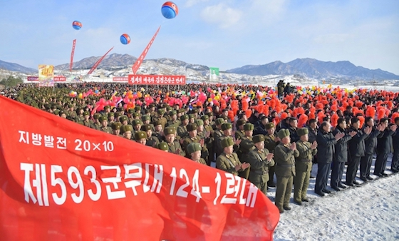 그는 운산군의 경제발전과 인민생활향상을 적극 도모하게 될 부흥의 귀중한 밑천인 지방공업공장들을 당의 인민대중제일주의사상과 정치의 고귀한 실체로, 인민의 복리를 지키고 위하는 깨끗한 량심의 응결체로 훌륭히 일떠세운 건설련대 관병들에게 뜨거운 인사를 보내면서 새 전구에서도 당의 원대한 구상을 앞장에서 실현해나가는 전위대의 영예를 떨쳐가리라는 확신을 표명하였다.