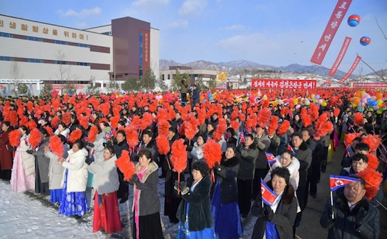 어머니당의 은정이 차넘치는 복받은 고장에서 윤택한 생활을 향유하게 된 군내주민들의 열렬한 환호와 박수갈채속에 새 공장의 주인들이 준공테프를 끊었다.