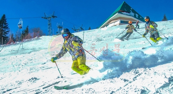 체육관광에서 첫째가는 관심을 모으는것은 멋들어지고 훌륭한 주로를 종횡무진하며 지쳐내리는 스키타기이다.