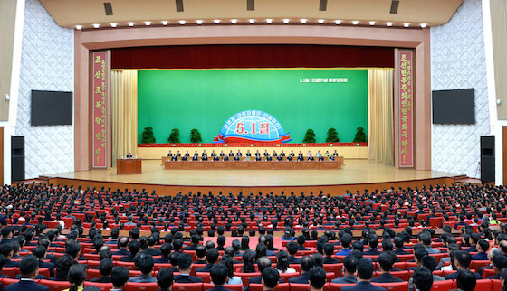 전세계근로자들의 국제적명절 5.1절 135돐기념 중앙보고회 진행