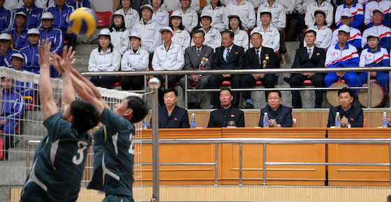 당과 정부의 간부들은 근로자들과 함께 다채로운 체육 및 유희오락경기를 관람하였다.