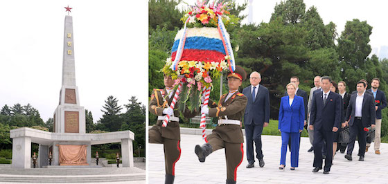 참가자들은 조선의 해방을 위한 성전에 고귀한 생을 바친 쏘련군렬사들을 추모하여 묵상한 다음 탑을 돌아보았다.(전문 보기)