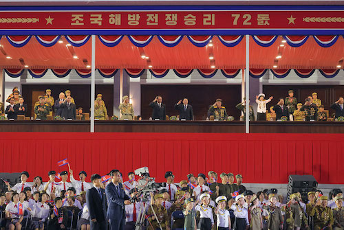 조국해방전쟁승리 72돐에 즈음한 전승세대와의 상봉모임과 예술공연은 세월이 흐르고 강산은 변해도 위대한 전승의 력사와 전통으로 하여 모든 세대가 붉은 한피줄로 굳건히 이어지고 하나의 생명체를 이루며 가장 정의로운 위업을 위한 전진의 보무를 과감히 내짚는 주체조선특유의 자랑스러운 국풍을 남김없이 과시하였다.(전문 보기)