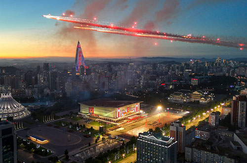 백전백승 조선로동당의 령도따라 조국청사에 특기할 사변적성과들을 안아오기 위한 장엄한 투쟁행로에서 뜻깊은 전승절을 성대히 경축하는 전체 인민들과 인민군장병들은 이 땅우에 강대하고 존엄높은 영웅조선, 불패의 강국을 일떠세워주신 위대한 수령 김일성동지께와 위대한 령도자 김정일동지께 가장 숭고한 경의와 영원무궁한 영광을 드리고있다.