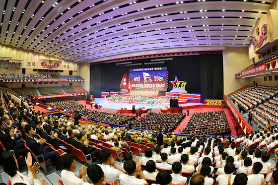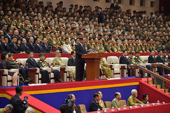 당과 정부, 무력기관의 지도간부들이 전쟁로병들과 함께 주석단에 자리잡았다.