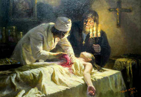 인체해부실험을 위해 병을 치료해준다는 구실을 대고 어둑침침한 방안에서 생사람의 배를 갈라 죽인 선교사의 탈을 쓴 미국놈들,