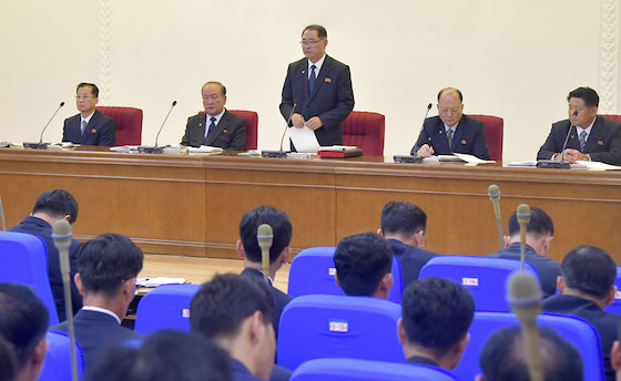 당중앙위원회 제8기 제12차전원회의 결정관철을 위한 내각당위원회 전원회의 확대회의 진행