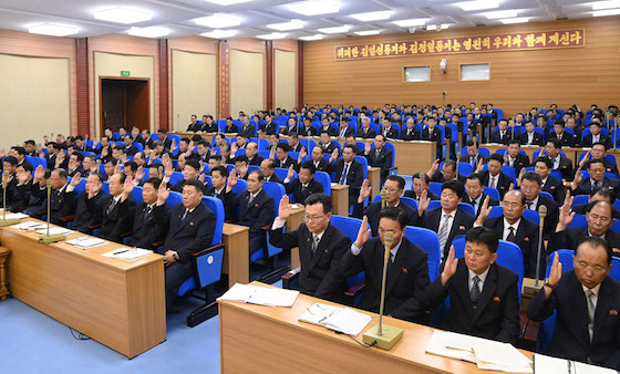 모두다 경애하는 김정은동지의 두리에 더욱 철통같이 뭉쳐 위대한 수령님의 존함으로 빛나는 우리 국가의 무궁한 번영을 위하여 힘차게 싸워나가자.(전문 보기)