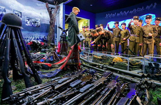 력사의 시궁창에 처박힌 《강대성》의 신화 조국해방전쟁승리기념관에 전시된 미제의 패배상을 보여주는 전리품과 자료들을 놓고