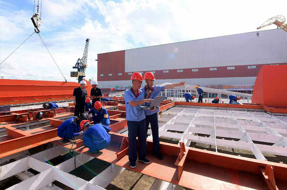 백전백승 조선로동당이 펼친 군사강국건설로선을 높이 받들고 남포조선소 로동계급이 우리 해군의 급진적인 변화를 위한 계속혁신, 련속도약의 진군보폭을 줄기차게 내짚고있다.