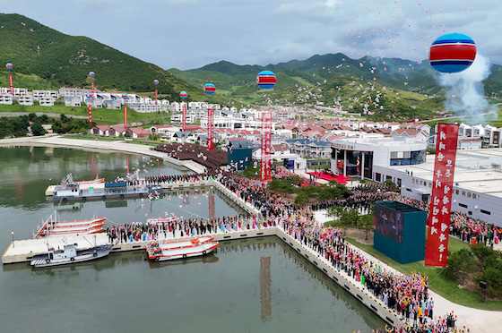 지방변혁의 새로운 진일보를 실증하는 력사의 화폭이 펼쳐진 준공식장에 축포탄과 함께 수많은 고무풍선들이 날아올라 락원포상공을 아름답게 장식하였다.