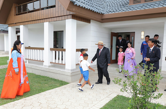 김정은동지께서는 희한한 새 살림집을 받아안고 크나큰 감격과 기쁨에 넘쳐있는 바다가양식사업소 종업원들인 한광선, 조동철, 박충혁세대들의 가정을 찾으시여 육친의 따뜻한 사랑과 정을 부어주시였다.