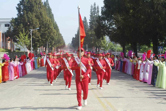 인민의 마음속에 길은 하나-당을 따라 영원히! 수도 평양으로 향하는 충성의 편지이어달리기대렬들과 함께