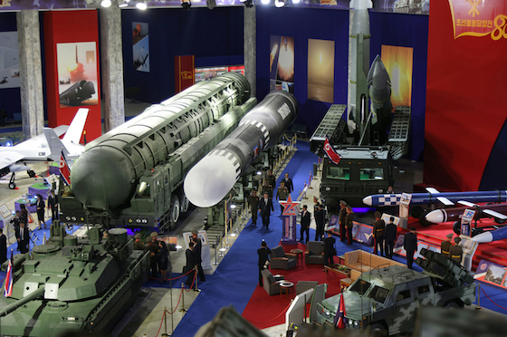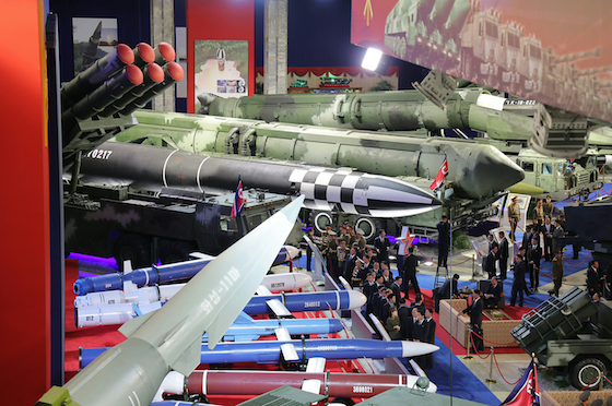 오늘의 전시회마당에는 핵억제력을 근간으로 하는 조선의 군사력구조를 부단히 현대화, 고도화하여온 중대사업의 최근결실들이 집결되여있습니다.