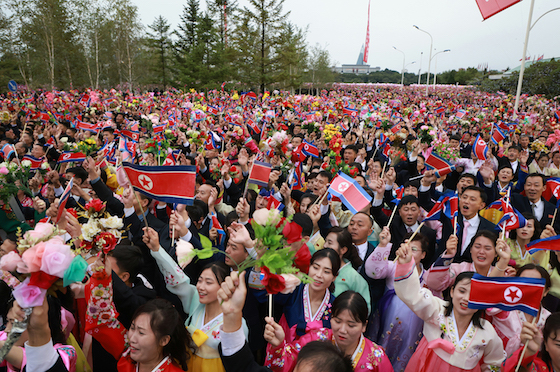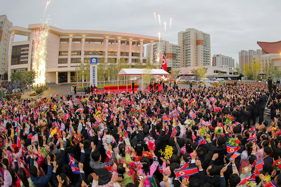 김정은동지께서 연설을 마치시자 전체 참가자들은 근로하는 인민이 마음껏 향유하는 사회주의만복과 더불어 부흥창창할 조국의 미래를 앞당겨오기 위함에 열화의 심혼을 다 바쳐가시는 자애로운 어버이께 드리는 다함없는 경모와 고마움의 정을 열광의 환호성으로 터쳐올리였다.