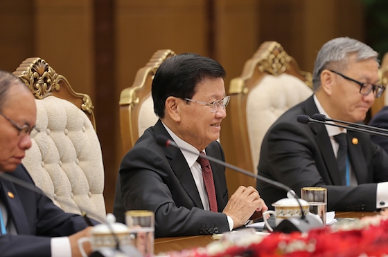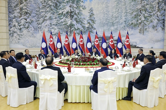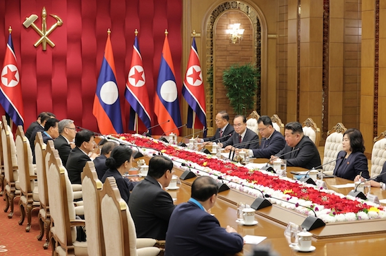 경애하는 김정은동지께서 라오스인민혁명당 중앙위원회 총비서, 라오스인민민주주의공화국 주석 통룬 씨쑤릿동지와 회담하시였다