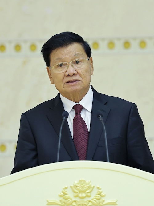 라오스인민혁명당 중앙위원회 총비서, 라오스인민민주주의공화국 주석 통룬 씨쑤릿동지를 환영하는 의식 진행