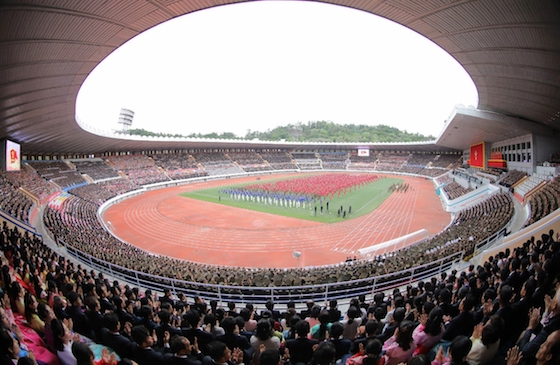 당을 따라 영원히 한길을 가고갈 전체 조선인민의 총의가 담긴 충성의 편지들을 간직하고 혁명의 수도 평양에 도착한 편지이어달리기대렬들이 시민들의 열렬한 환영을 받으며 증정모임장소인 김일성경기장에 들어섰다.