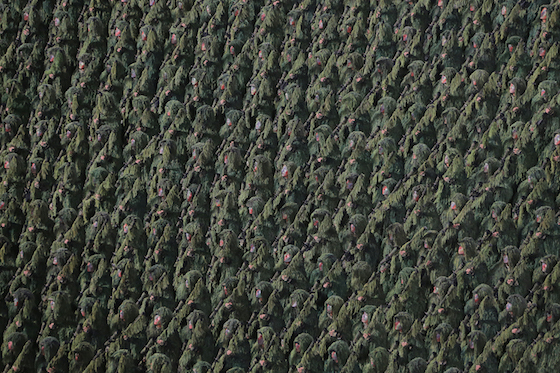 위대한 당중앙의 사상과 령도에 절대충성, 절대복종하는 결사옹위의 전위대오, 천하제일강군의 기상이 열병대원들의 름름한 모습과 틀어잡은 무장마다에 용솟음쳤다.
