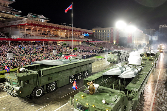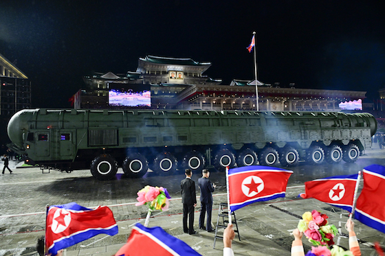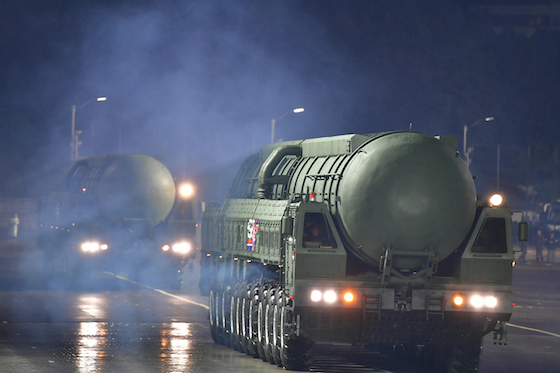 조선민주주의인민공화국의 최강의 핵전략무기체계인 대륙간탄도미싸일 《화성포-20》형종대가 주로를 메우며 광장에 들어서자 관중들이 터치는 열광의 환호는 고조를 이루었다.