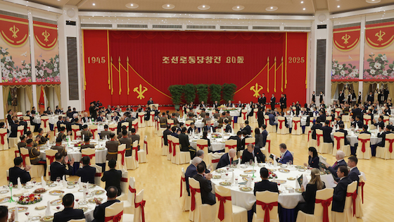 영광스러운 조선로동당창건 80돐경축 국가연회가 10월 10일 목란관에서 진행되였다.