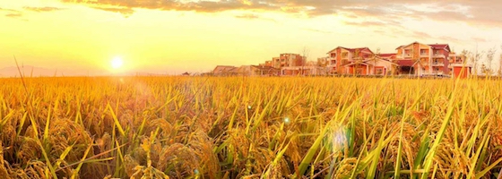 짙은 황금빛노을에 붉게 물든 전야에서 벼바다 설레이는 소리가 금시라도 들려올것만 같다.총알처럼 알알이 여문 벼이삭들이 무겁게 고개를 짓수그리고 구수한 낟알향기를 물씬 풍겨주는듯싶다.계절을 따라 날아온 흰두루미들도 풍작이 든 황금벌에서 내려앉을 곳을 찾지 못해 너울너울 날아예는듯…
