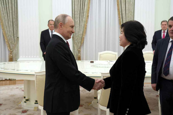 로씨야련방 외무성의 초청에 따라 로씨야련방을 방문하고있는 조선민주주의인민공화국 외무상 최선희동지가 27일 모스크바 크레믈리에서 로씨야련방 대통령 울라지미르 울라지미로비치 뿌찐동지와 상봉하였다.
