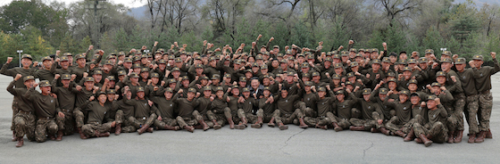 김정은동지께서는 군단관하 련합부대 군정지휘관들이 당의 특수작전무력건설사상을 실천적성과로 받들어 모든 관병들을 정치사상적으로, 군사기술적으로 땅땅 여문 일당백의 싸움군들로 키워가리라고 굳게 믿는다고 하시면서 그들과 뜻깊은 기념사진을 찍으시였다.