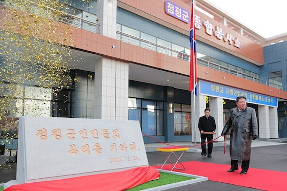 김정은동지께 정평군 지방공업공장과 종합봉사소건설에 참가한 군부대지휘관이 완공보고를 드리였다.