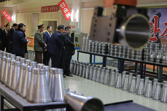 김정은동지께서는 우리 군대 미싸일 및 포병무력의 전망적수요를 충족시키기 위해서는 앞으로 당 제9차대회가 결정하게 될 새로운 군수공업기업소들을 계획대로 설립하는것과 함께 현존공장들의 생산구조도 보다 효률적이고 실용적으로 부단히 갱신하는 등 군수공업의 현대화수준을 끊임없이 높여나가야 한다고 지적하시였다.