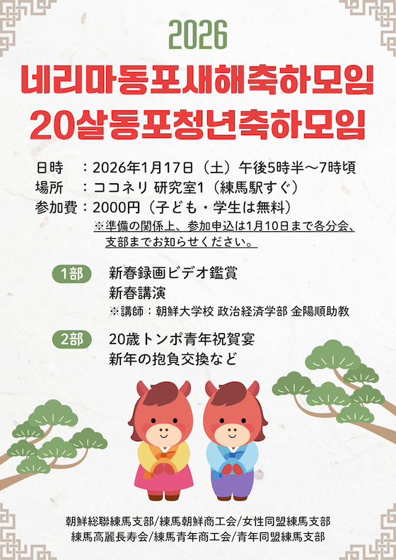 알림 : 2026 네리마동포 새해 축하모임 20살동포 청년축하모임 / 2026年1月17日(土)