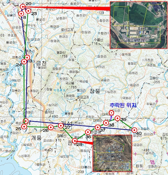 적무인기에 기록된 개성시 개풍구역일대를 촬영한 자료의 일부