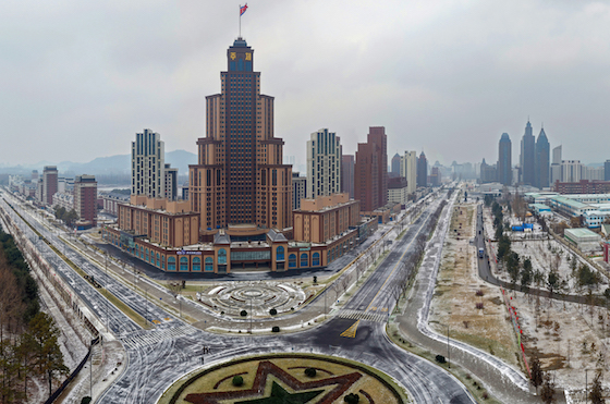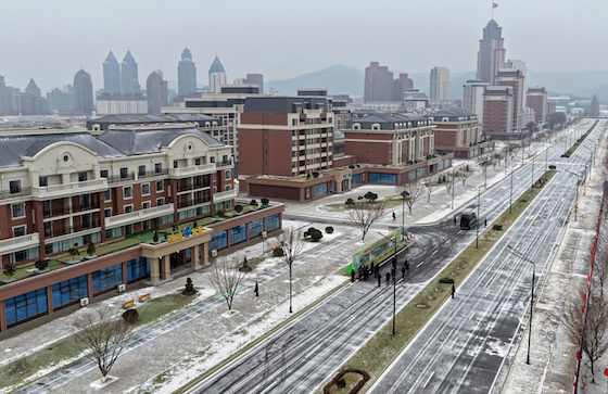 김정은동지께서는 화성지구에 새로 일떠선 새별거리를 돌아보시였다.