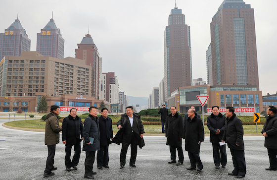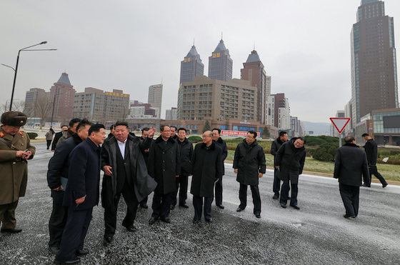 경애하는 김정은동지께서 완공단계에 들어선 화성지구 4단계 건설사업을 현지에서 지도하시였다