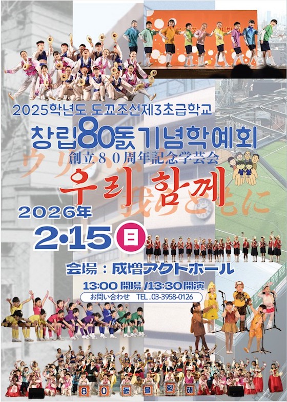 알림/お知らせ : 2026학년도 도꾜조선제3초급학교 창립80돐기념학예회 /