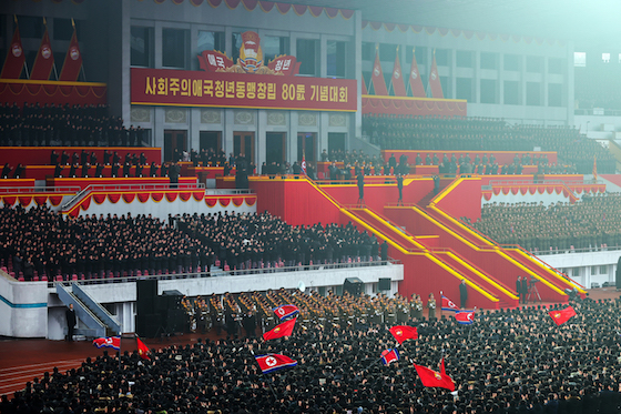 사회주의애국청년동맹창립 80돐 기념대회가 1월 16일 수도 평양의 김일성경기장에서 성대히 진행되였다.