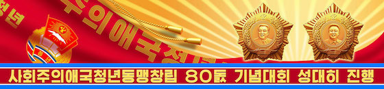 김정은시대 청년전위들의 열화같은 애국충심과 용솟는 열정이 강산을 진감하며 륭성부흥하는 조국에 기세찬 활력을 더해주고있는 장엄한 전진려정에서 온 나라는 사회주의애국청년동맹창립 80돐을 뜻깊게 맞이하고있다.