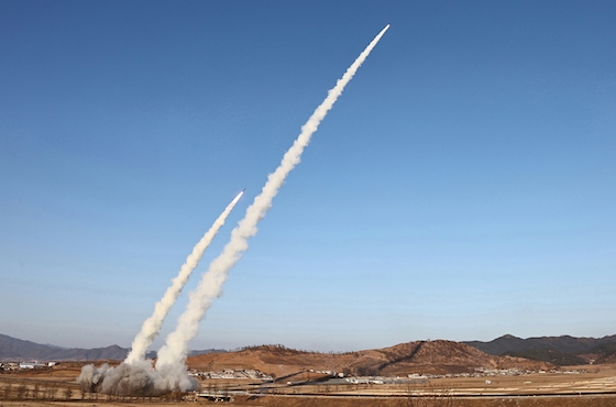 - 조선민주주의인민공화국 미싸일총국 대구경방사포무기체계시험사격 진행