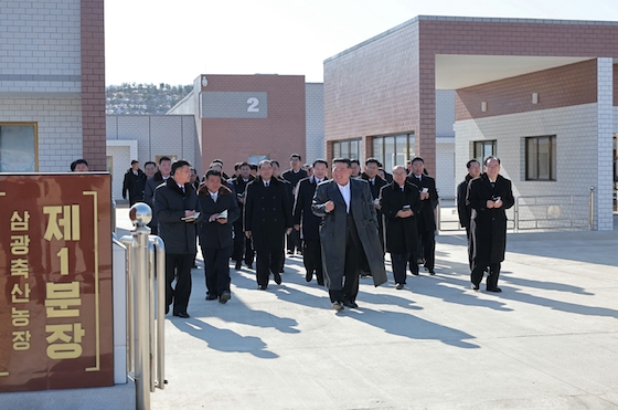김정은동지께서는 지도간부들과 함께 삼광축산농장 제1분장과 시설모재배장, 젖제품생산장 등을 돌아보시였다.