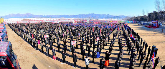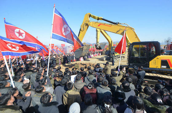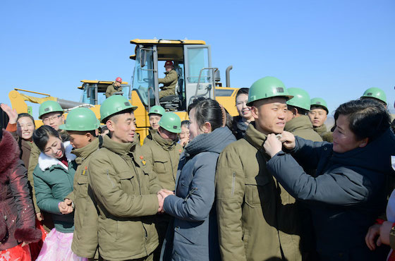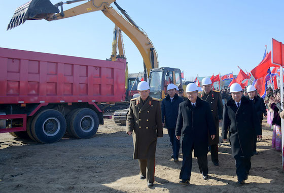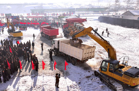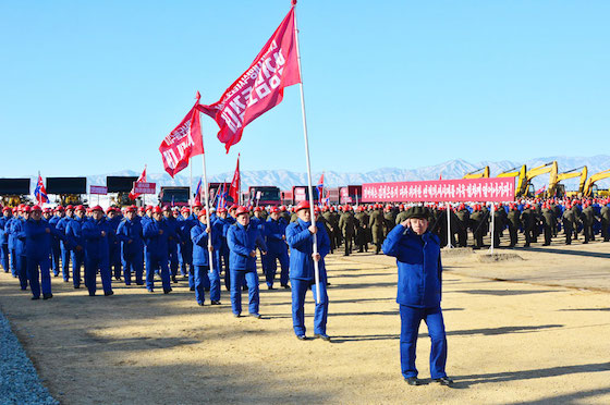 지방변혁의 력사적위업을 이룩해나가는 당중앙의 원대한 구상실현에서 혁명군대의 강용한 기개, 조선사람의 본때를 남김없이 떨쳐갈 열의에 넘쳐 인민군관병들과 돌격대원들이 건설장비들의 동음을 기운차게 울리며 공사에 전격진입하였다.