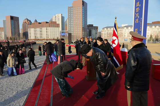 김정은동지께서는 새 살림집에 입사하게 될 유가족들을 만나주시였다.