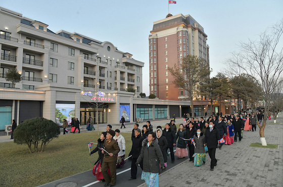 모든 생활조건이 최상의 수준에서 갖추어진 살림집들을 돌아보며 그들은 원수님의 은덕, 우리 당의 사랑이 얼마나 크나큰가를 온넋으로 절감하였다.