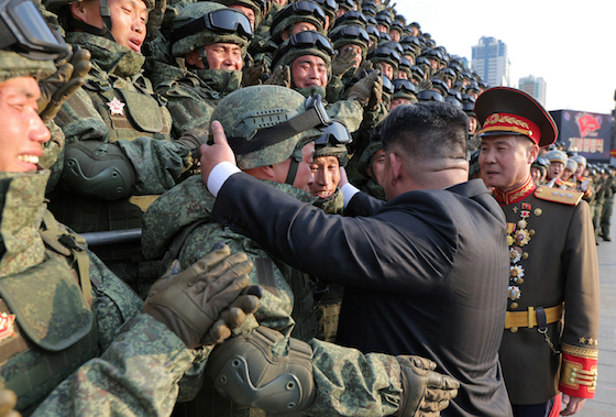 김정은동지께서는 해외군사작전에 참전하여 조국의 명예를 만방에 떨친 빛나는 군공속에 당대회를 기념하는 열병식에 참가한 관병들을 만나시고 부상자들의 건강회복상태도 다심히 헤아리시며 앞으로도 당과 혁명, 조국과 인민을 위한 애국충성의 정보를 힘있게 이어가라고 뜨겁게 고무해주시였다.