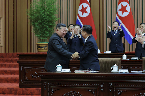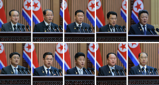 최고인민회의 의장 조용원대의원이 보고를 하였다.