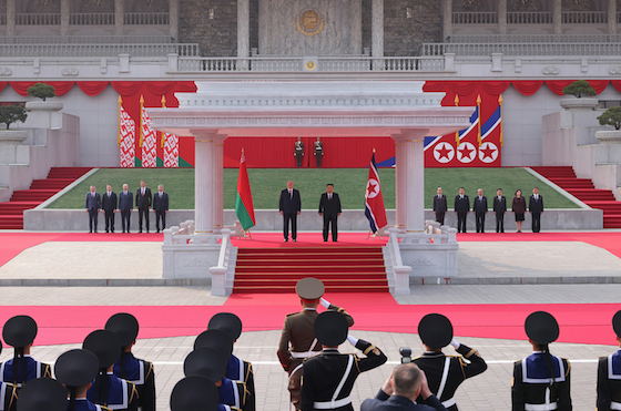 알렉싼드르 루까쉔꼬대통령의 평양방문을 열렬히 환영합나다  벨라루씨공화국 대통령 알렉싼드르 루까쉔꼬동지를 환영하는 의식 진행
