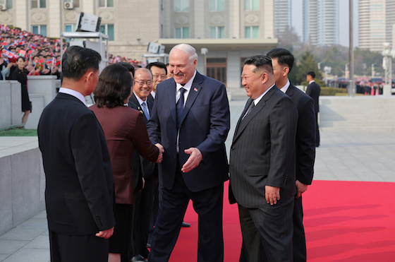 조선민주주의인민공화국 국무위원장 김정은동지의 초청에 따라 우리 나라를 공식방문하는 벨라루씨공화국 대통령 알렉싼드르 루까쉔꼬동지를 환영하는 의식이 3월 25일 김일성광장에서 진행되였다.