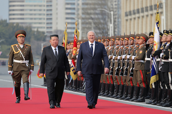 김정은동지의 안내를 받으며 알렉싼드르 루까쉔꼬동지는 조선인민군 명예위병대를 사열하였다.