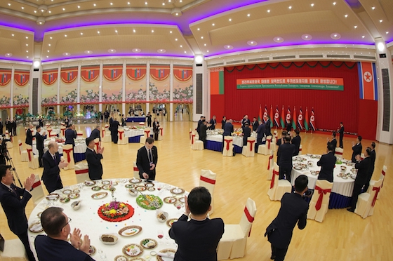 연회참가자들은 조선민주주의인민공화국과 벨라루씨공화국사이의 친선협조관계발전을 위하여 잔을 들었다.